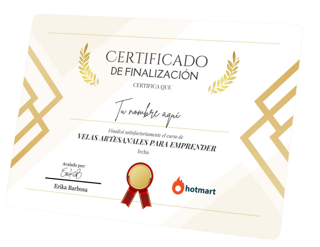 El curso es hermoso y las clases son muy claras. La plataforma me funcionó perfecto y aprendí a hacer mis velas rápidamente porque la profesora explica con muchísima paciencia. Gracias a Dios ya tengo mis primeros pedidos y poco a poco mi emprendimiento va creciendo. Sin duda, este curso está hecho con mucho amor.